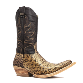 Bota de Couro Bovino Imitação de Cobra Preta - Cano Médio, Bico Quadrado, SOLADO X-FLEX ARTESANAL