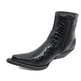 Bota De Couro Bovino Imitação De Jacaré Preto - Cano Médio, Bico Quadrado, Solado de Couro Artesanal