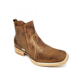Bota de Couro Bovino Marrom - Cano Curto, Bico Quadrado, SOLADO FLEX COMFORT