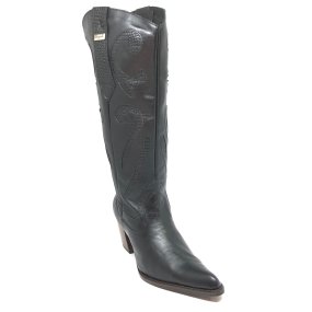 BOTA FEMININA DE COURO BOVINO PRETO - CANO ALTO, BICO FINO