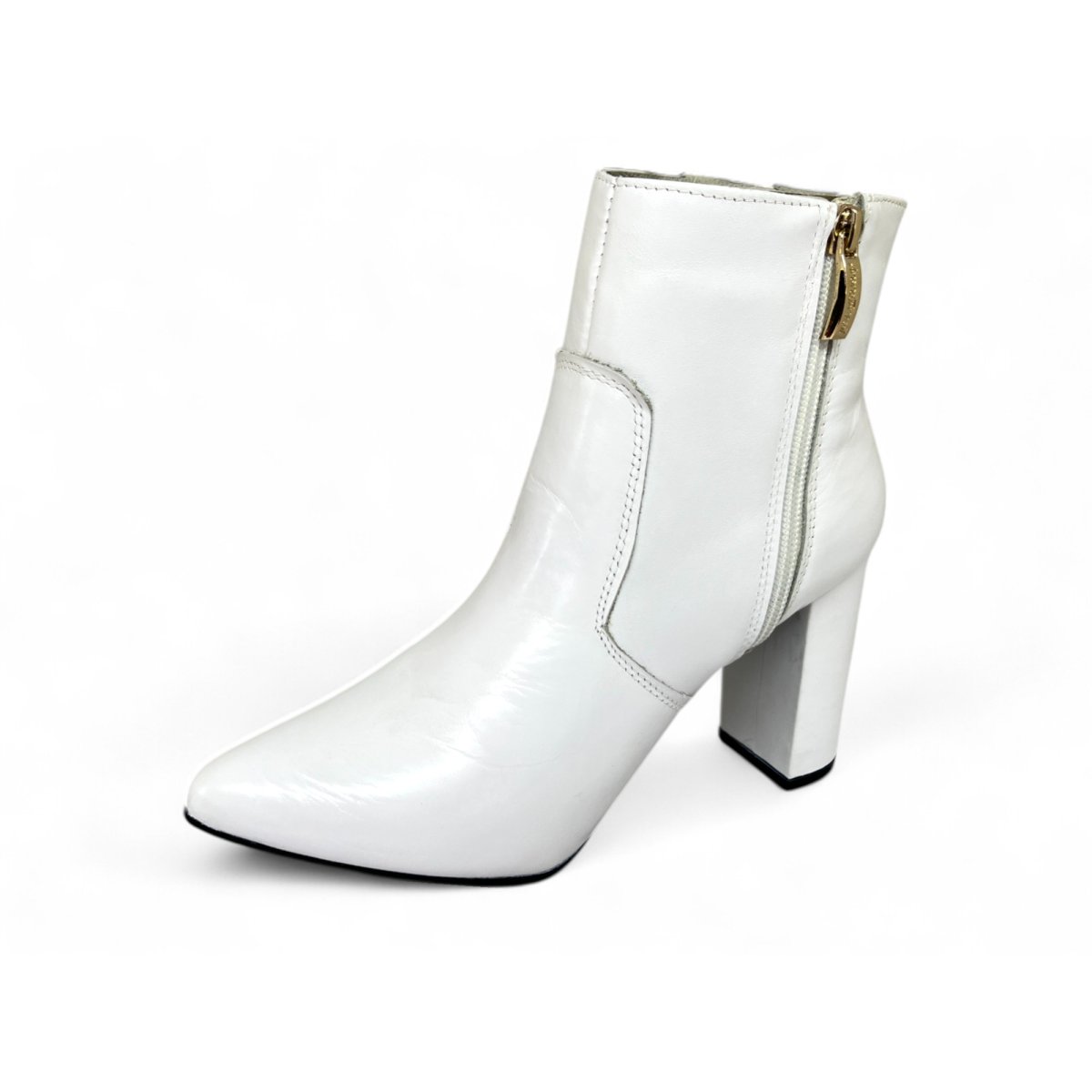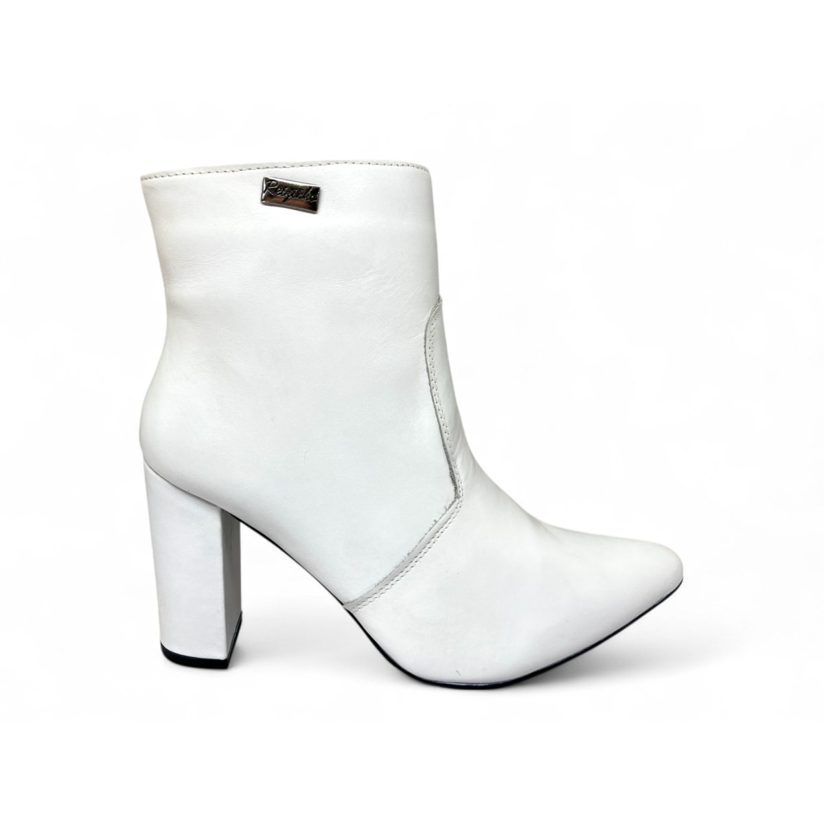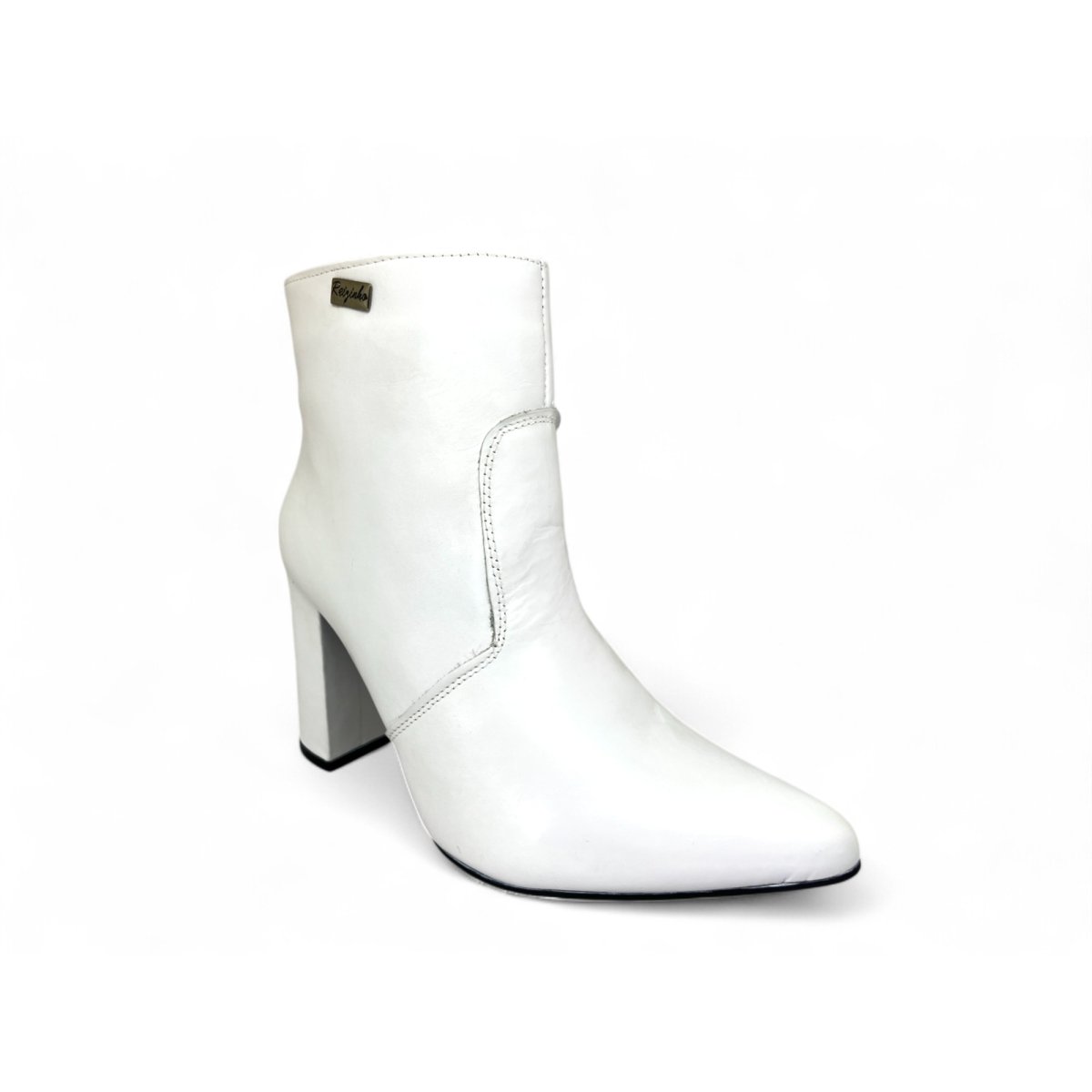 Bota Texana Feminina de Couro Bovino Branca - Cano Curto Zíper, Bico Fino | Reizinho Botas