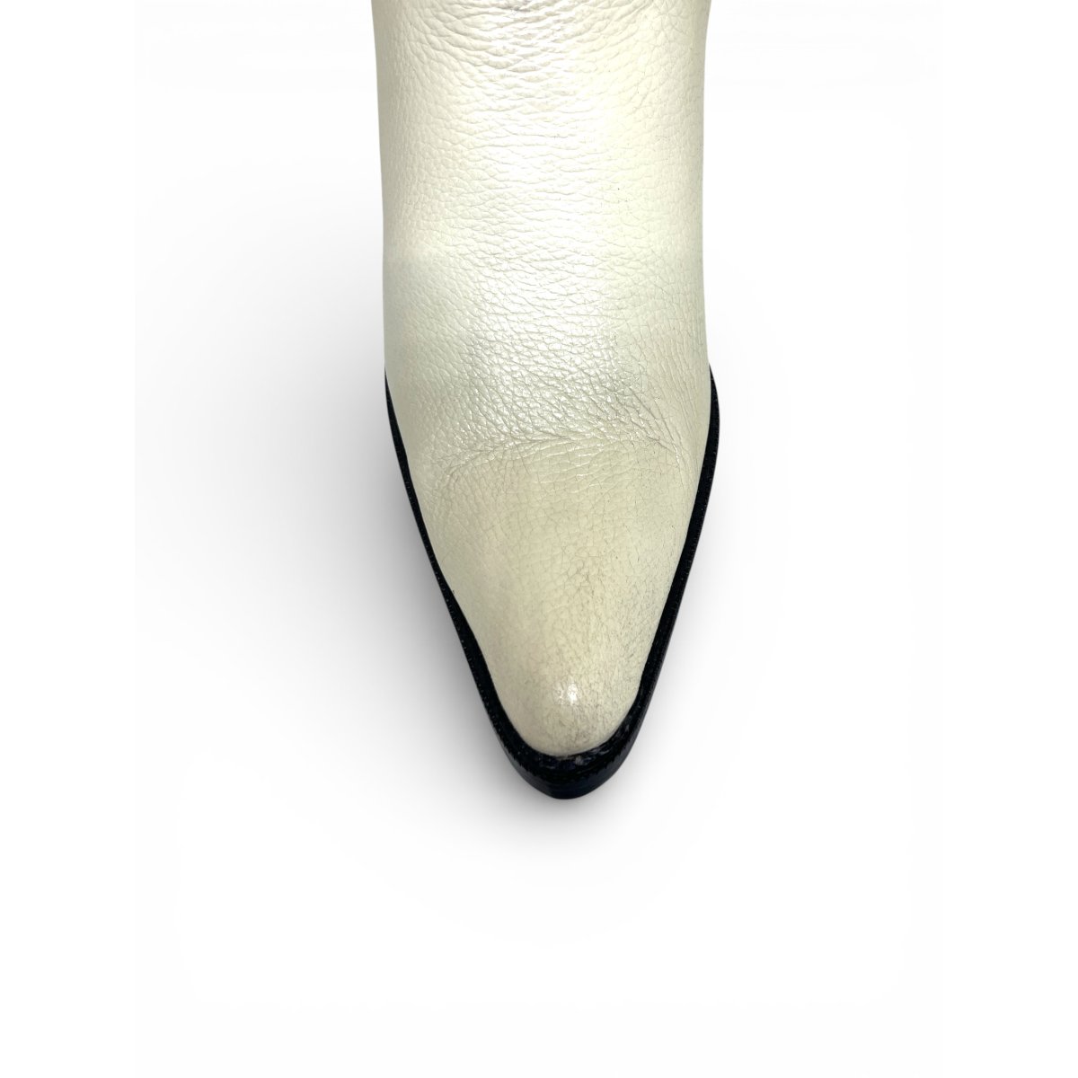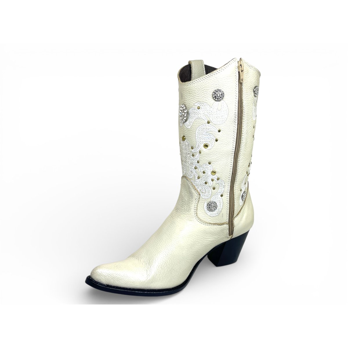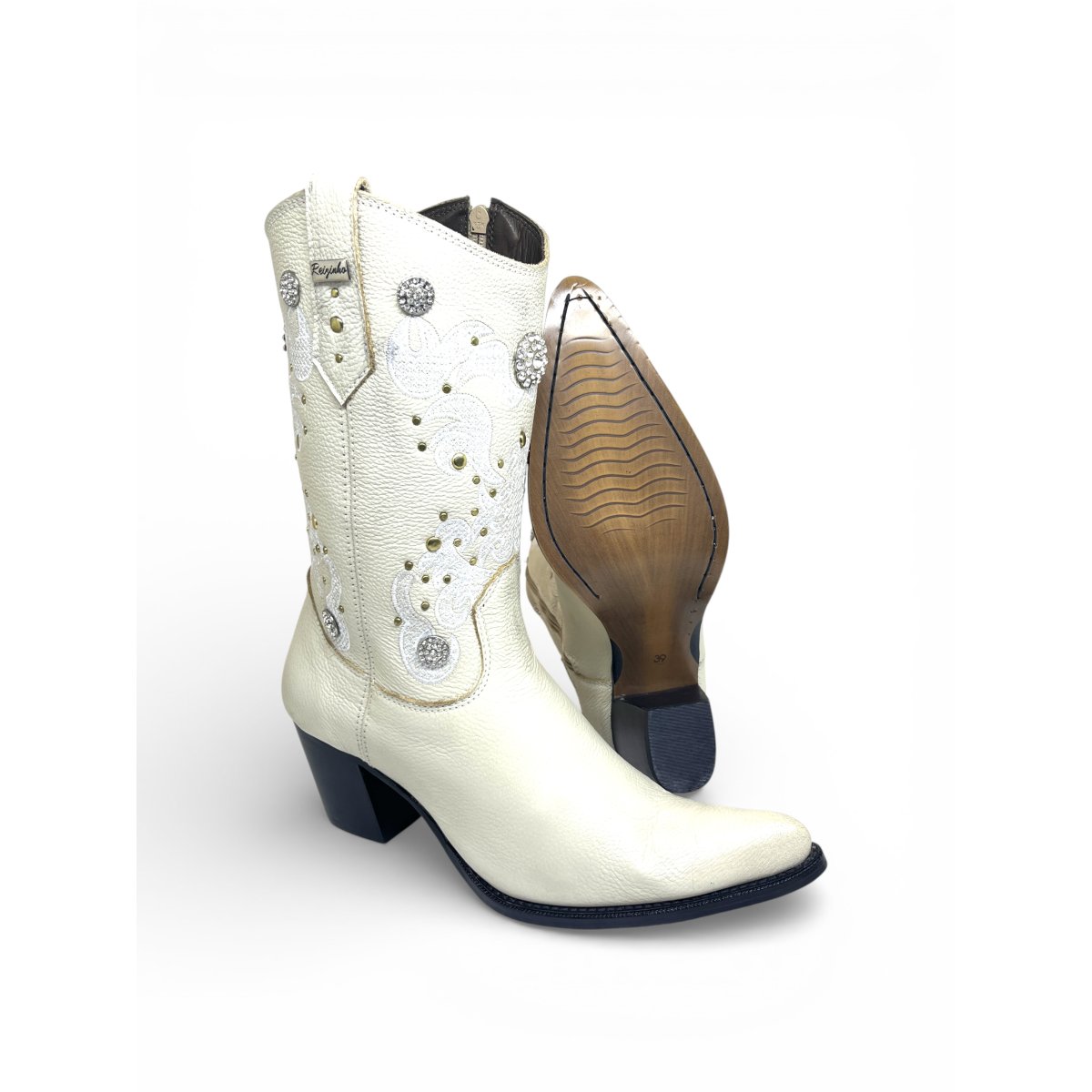 Bota Texana Feminina de Couro Bovino branco Gelo - Cano Alto, Bico Fino | Reizinho Botas