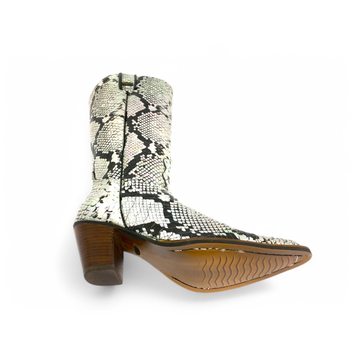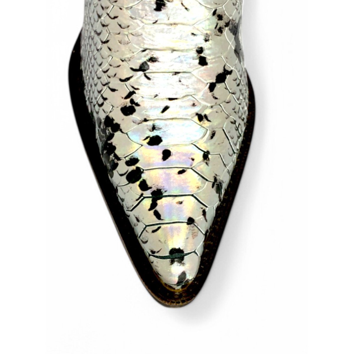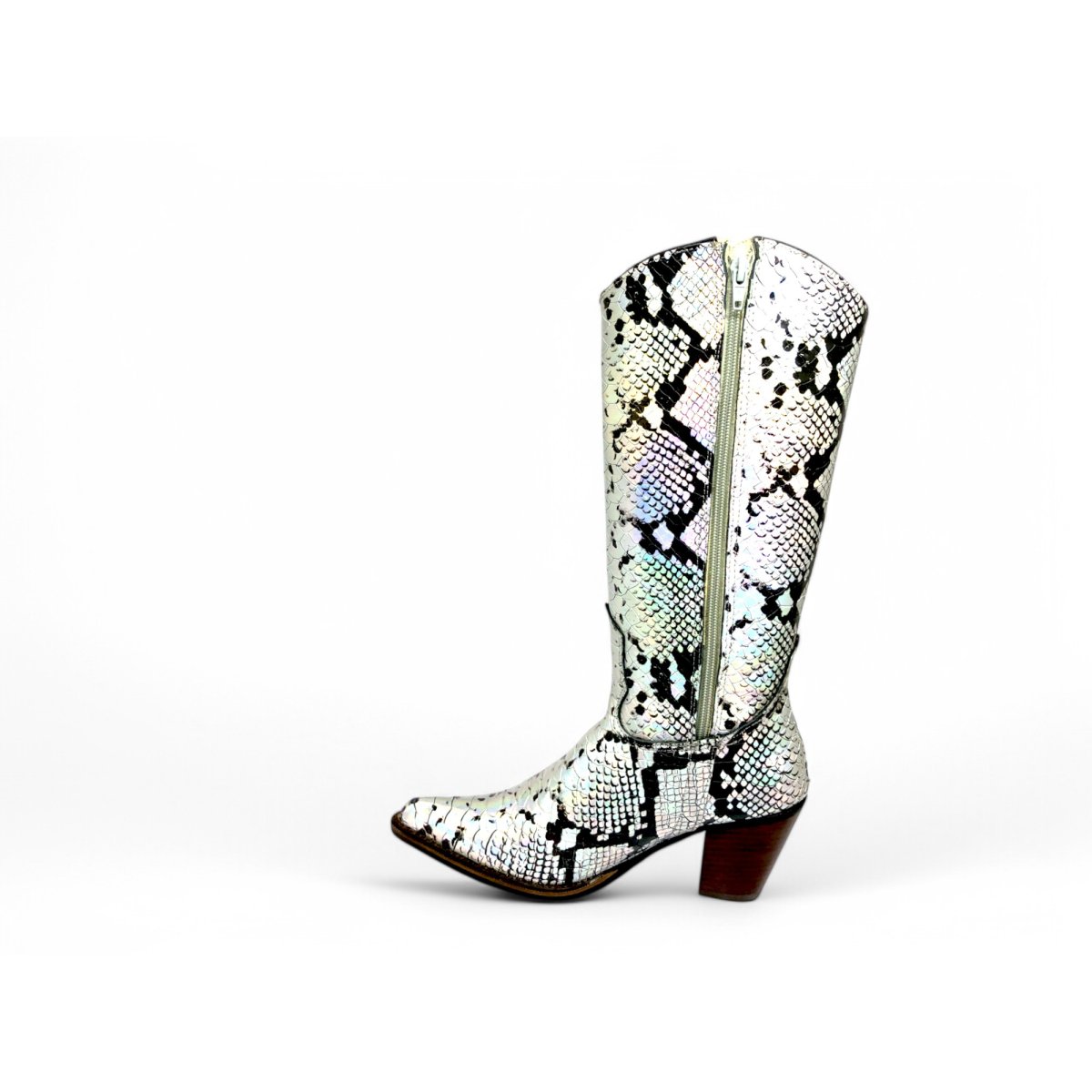 Bota Texana Feminina de Couro Bovino Imitação de Cobra Natural Prateada - Cano Alto, Bico Fino | Reizinho Botas