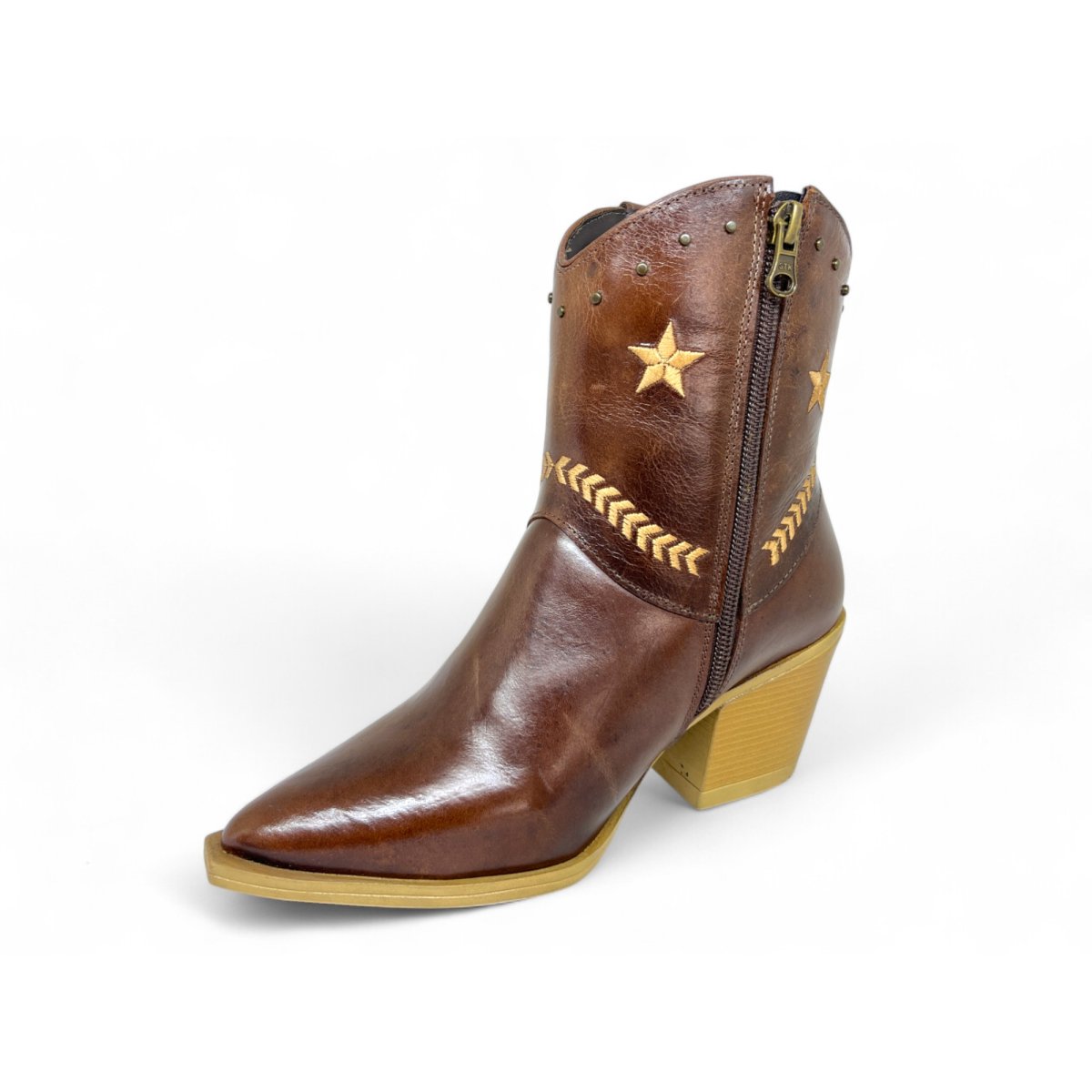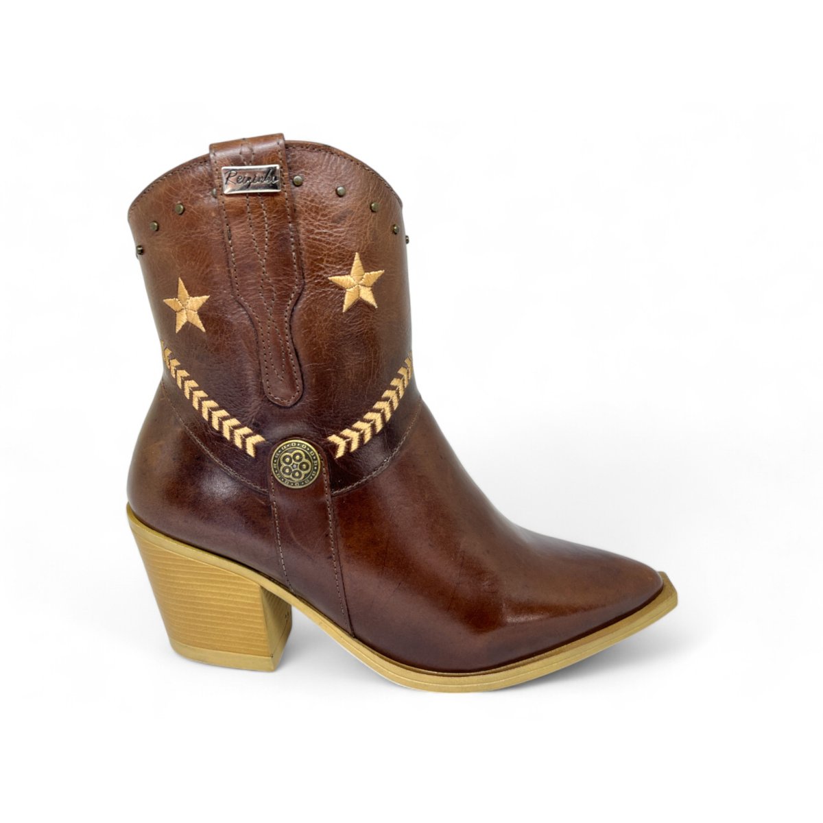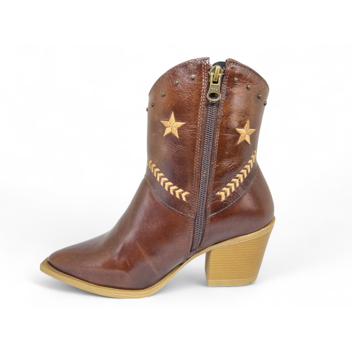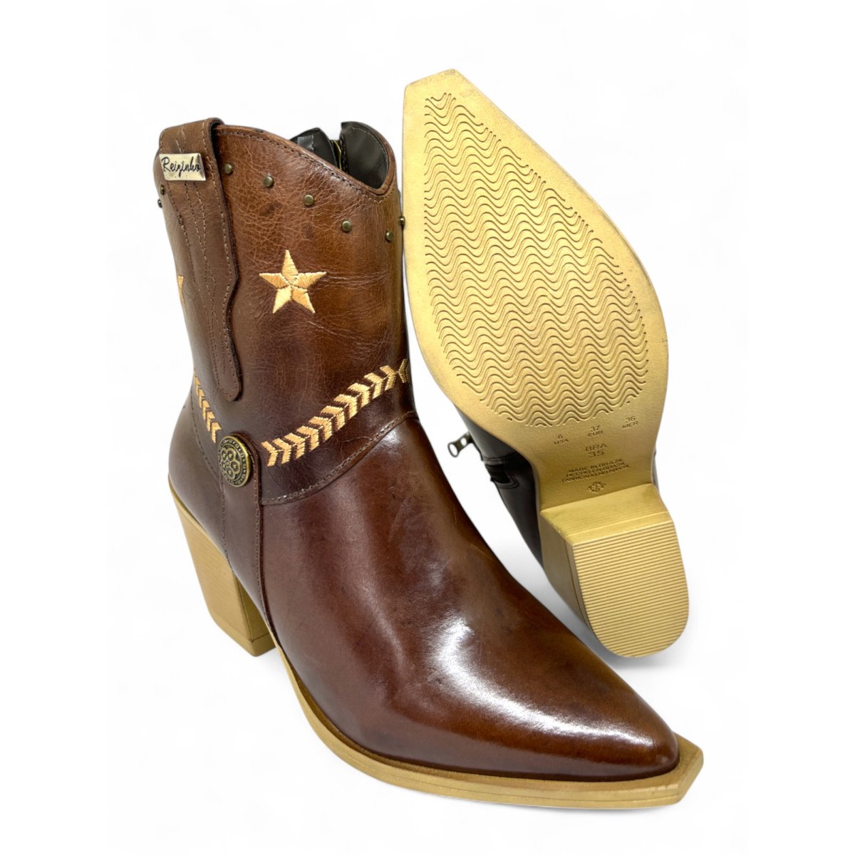 Bota Texana Feminina de Couro Bovino Marrom - Cano Curto Zíper, Bico Fino | Reizinho Botas