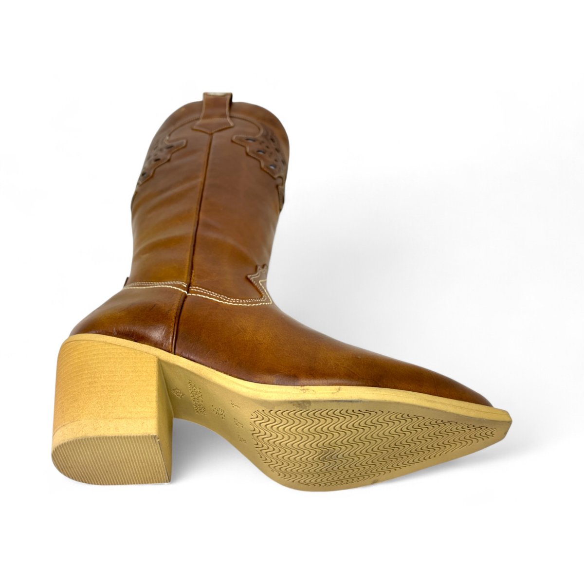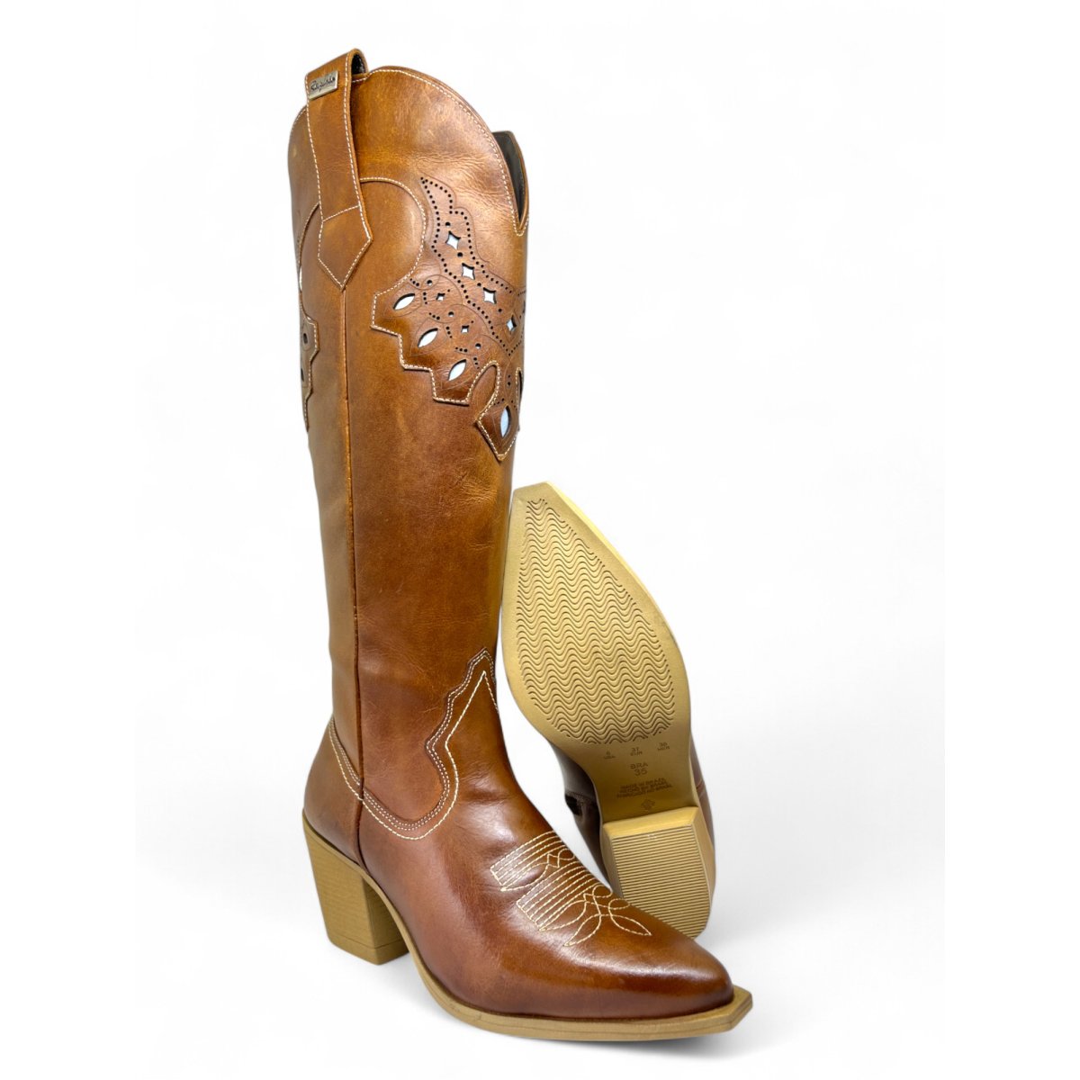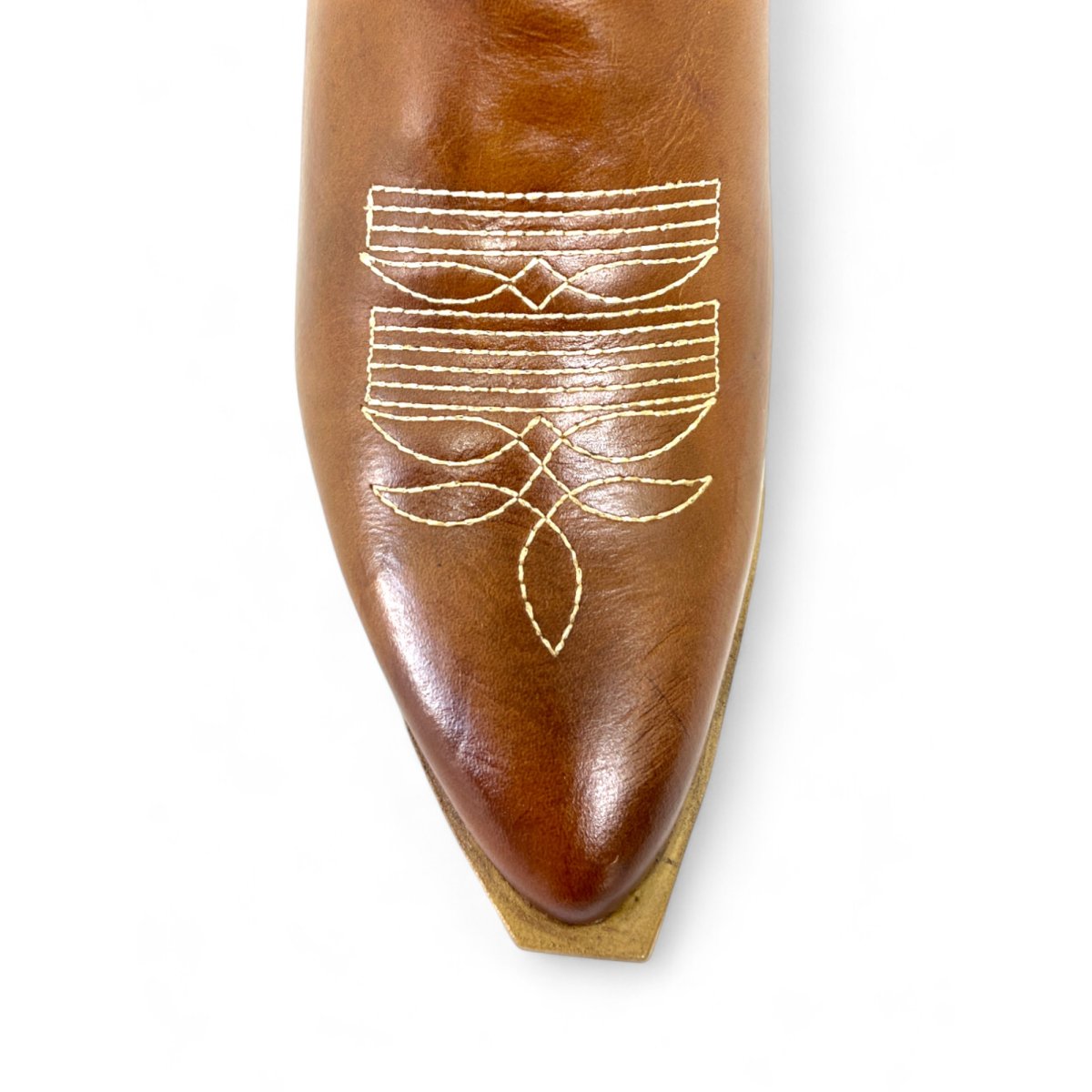 Bota Texana Feminina de Couro Bovino Marrom Havana - Cano Alto, Bico Fino | Reizinho Botas
