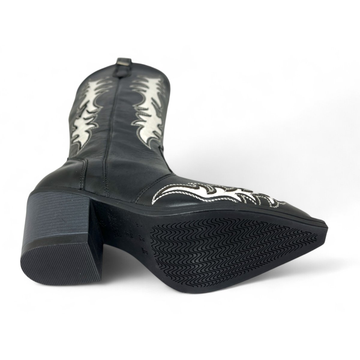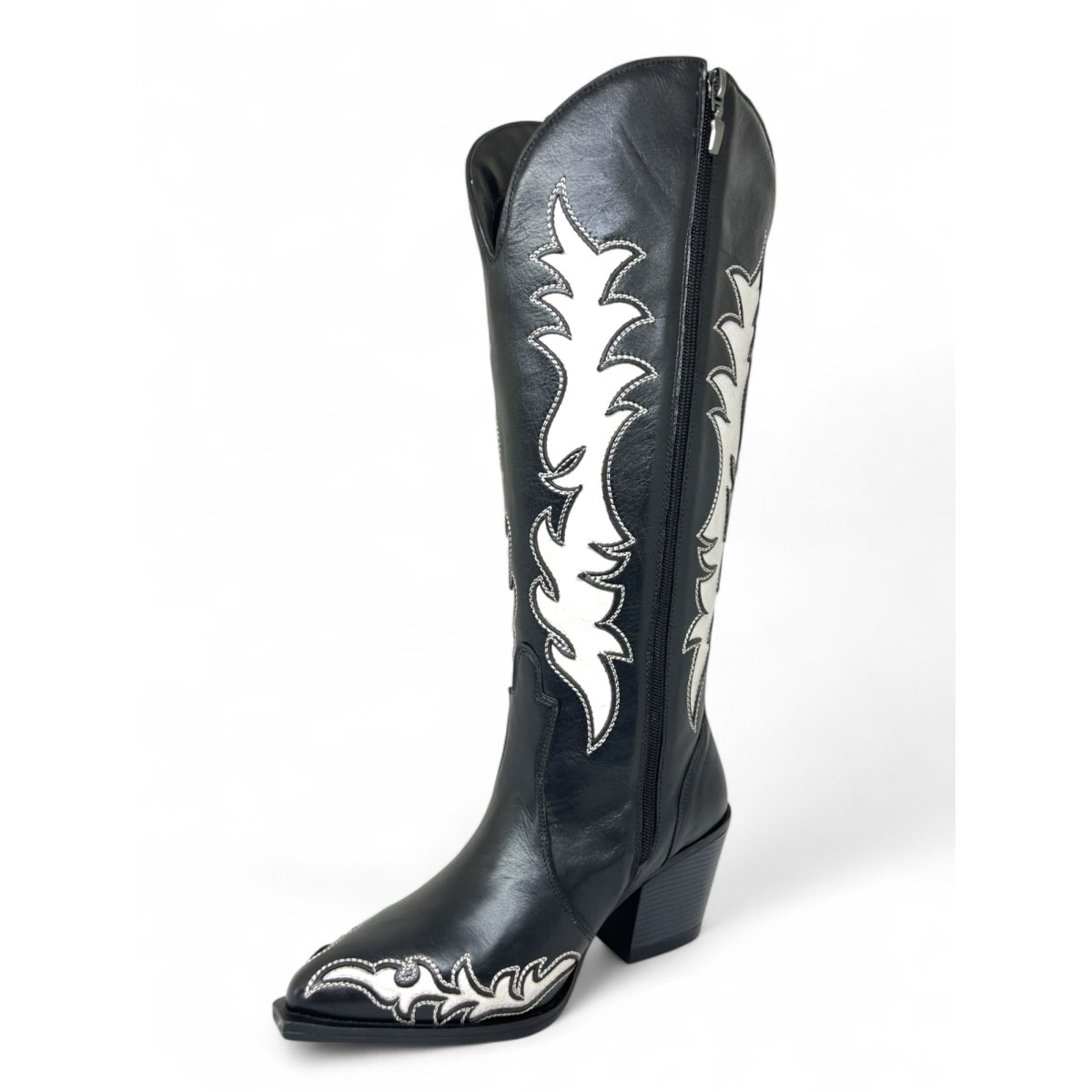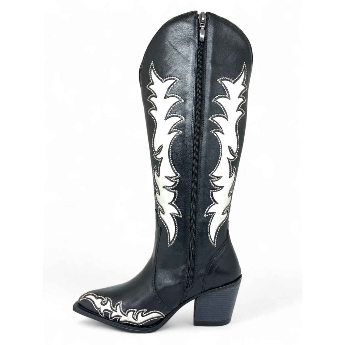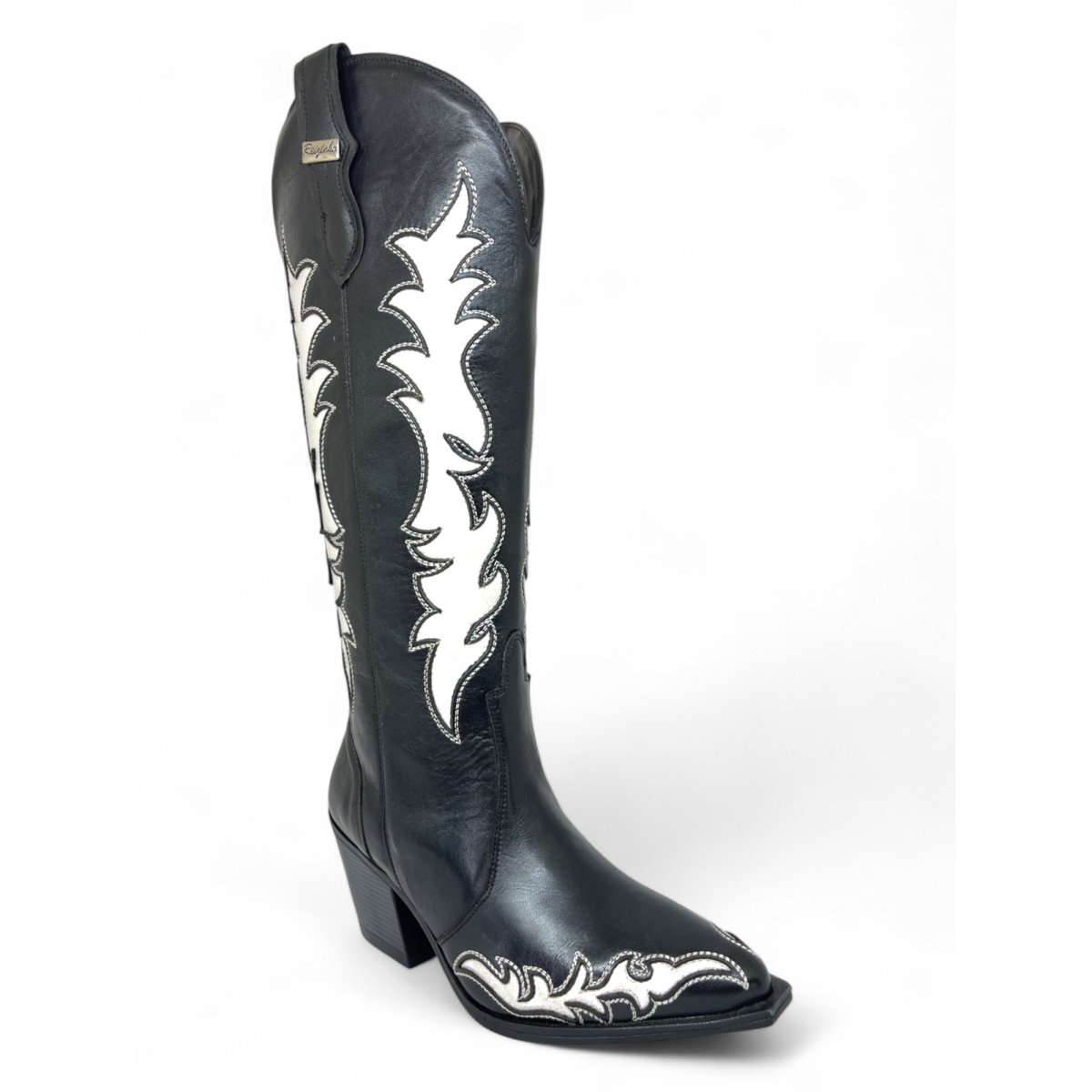 Bota Texana Feminina de Couro Bovino Preto - Cano Alto, Bico Fino | Reizinho Botas