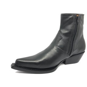 BOTA TEXANA FEMININA REIZINHO DE COURO BOVINO PRETA - CANO ALTO, BICO FINO