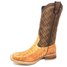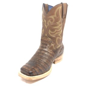 Bota de Couro de Jacaré Havana Escuro - Cano Alto, Bico Quadrado, SOLADO X-FLEX ARTESANAL