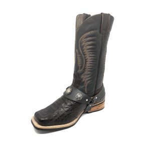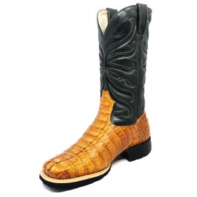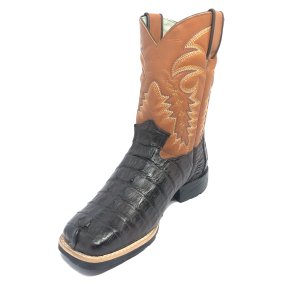 Bota de Couro de Jacaré Havana Rabo - Cano Alto, Bico Quadrado, Solado Flex Comfort