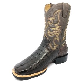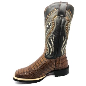 Bota de Couro de Jacaré Marrom - Cano Alto, Bico Quadrado, Solado Flex Comfort
