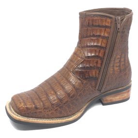 Bota de Jacaré Marrom - Cano Curto, Bico Quadrado, Solado X-Flex Artesanal