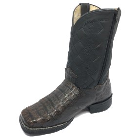 Bota de Couro de Jacaré Marrom Rabo- Cano Alto, Bico Quadrado, Solado Flex Comfort