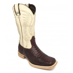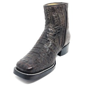 Bota de Jacaré Marrom Rabo - Cano Curto, Bico Fino Arredondado, Solado X-Flex Artesanal