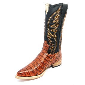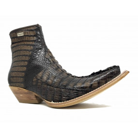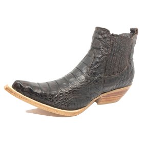 Bota de Couro de Jacaré Preto - Cano Alto, Bico Fino, SOLADO DE COURO ARTESANAL