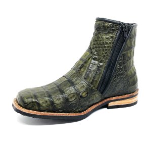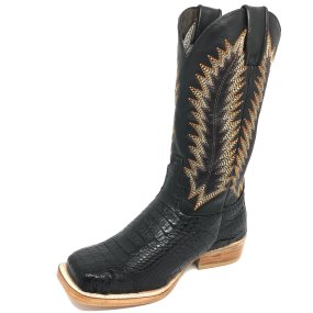 Bota de Couro de Jacaré Preto - Cano Alto, Bico Quadrado, Solado Flex Comfort