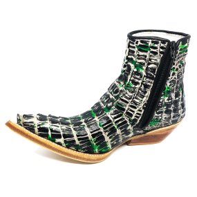 Bota de Couro de Jacaré Preto - Cano Alto, Bico Redondo, SOLADO X-FLEX ARTESANAL