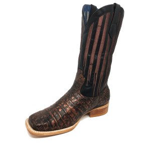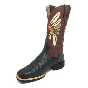 Bota de Couro de Jacaré Preto Rabo - Cano Alto, Bico Quadrado, SOLADO DE COURO ARTESANAL