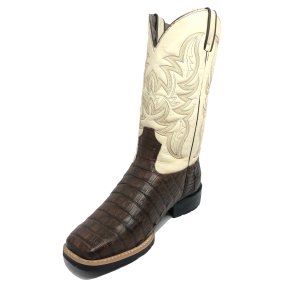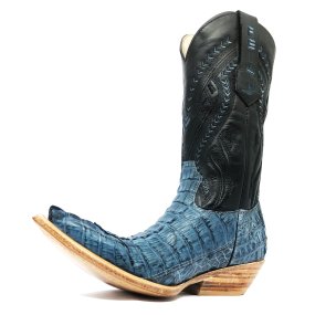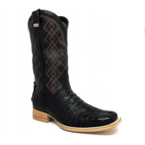 Bota de Couro de Jacaré Preto Rabo - Cano Alto, Bico Quadrado, SOLADO X-FLEX ARTESANAL