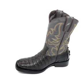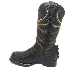 Bota de Couro de Jacaré Preto Rabo - Cano Alto, Bico Quadrado, SOLADO X-FLEX ARTESANAL