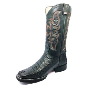Bota de Couro de Jacaré Preto Rabo - Cano Curto, Bico Quadrado, SOLADO FLEX COMFORT