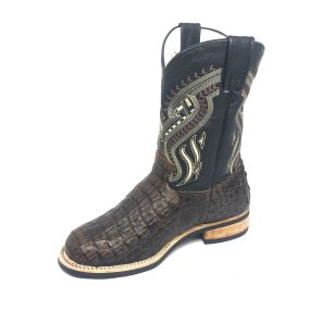 Bota de Jacaré Preto Rabo - Cano Curto, Bico Quadrado, Solado X-Flex Artesanal
