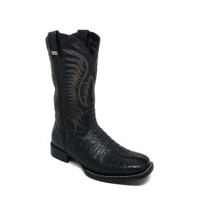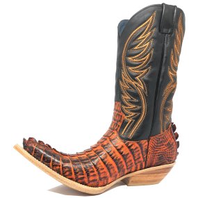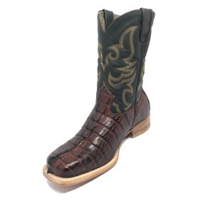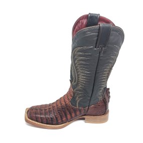 Bota de Couro de Jacaré Tabaco- Cano Alto, Bico Quadrado Clássico, SOLADO DE COURO ARTESANAL