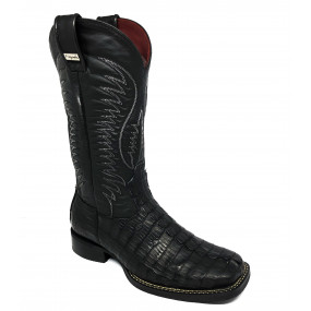 Bota de Couro de Jacaré Tabaco - Cano Alto, Bico Quadrado, Solado Flex Comfort