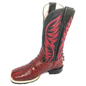 Bota de Couro de Jacaré Tabaco - Cano Alto, Bico Quadrado, Solado Flex Comfort