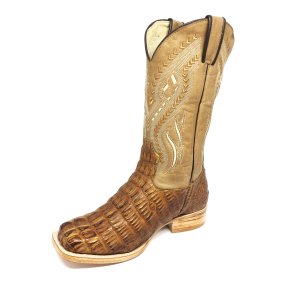Bota de Jacaré Tabaco - Cano Curto, Bico Quadrado, Solado X-Flex Artesanal