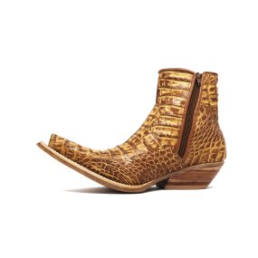 Bota de Couro de Jacaré Tabaco Rabo- Cano Alto, Bico Quadrado, Solado Flex Comfort