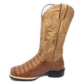 Bota de Couro de Jacaré Tabaco Rabo - Cano Médio, Bico Quadrado, Solado Flex Comfort