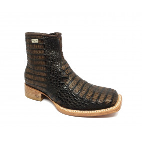 Bota de Couro de Jacaré Verde Musgo - Cano Médio, Bico Quadrado, Solado Flex Comfort