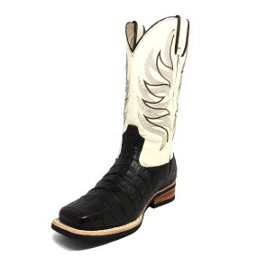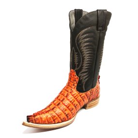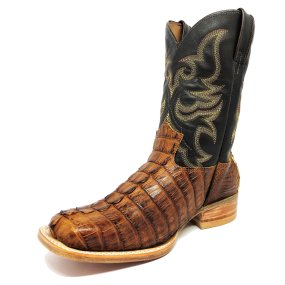 Bota de Jacaré Havana Escuro Rabo - Cano Alto, Bico Quadrado, SOLADO X-FLEX ARTESANAL