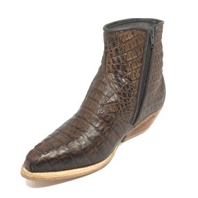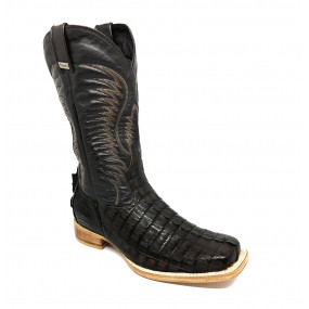 Bota de Jacaré Marrom - Cano Alto, Bico Quadrado, SOLADO DE COURO ARTESANAL
