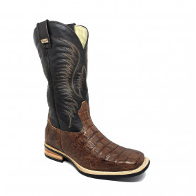 Bota de Jacaré Marrom Rabo - Cano Médio, Bico Quadrado, Solado Flex Comfort