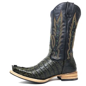 Bota de Jacaré Preto - Cano Médio, Bico Quadrado, SOLADO S-FLEX ARTESANAL