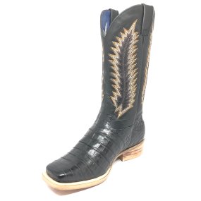 Bota de Jacaré Preto - Cano Médio, Bico Quadrado, SOLADO X-FLEX ARTESANAL