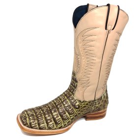 Bota de Jacaré Preto Rabo - Cano Alto, Bico Quadrado, SOLADO DE COURO ARTESANAL
