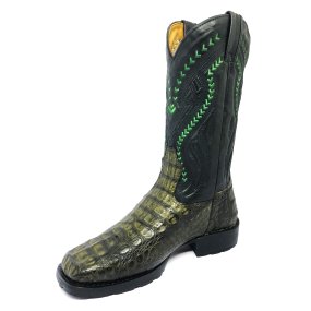 O cano de 27 cm, feito de couro bovino preto de altíssima qualidade, harmoniza de forma primorosa com o couro de jacaré, enquanto o bordado “RZ027” em preto, com os delicados toques de laranja, cria uma combinação perfeita de estilos, equilibrando o clássico e o contemporâneo. O bordado, tão solicitado pelos clientes da linha Premium da Reizinho Botas, é uma assinatura de sofisticação, que remete à exclusividade e ao requinte. A união entre o couro de jacaré e o couro bovino no cano e nas partes que compõem a bota faz com que a peça se torne ainda mais marcante e de qualidade superior.