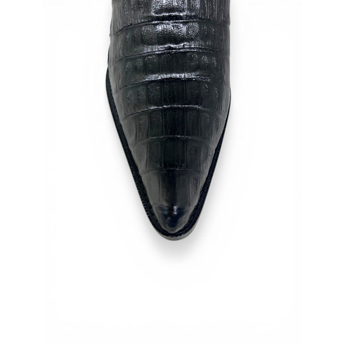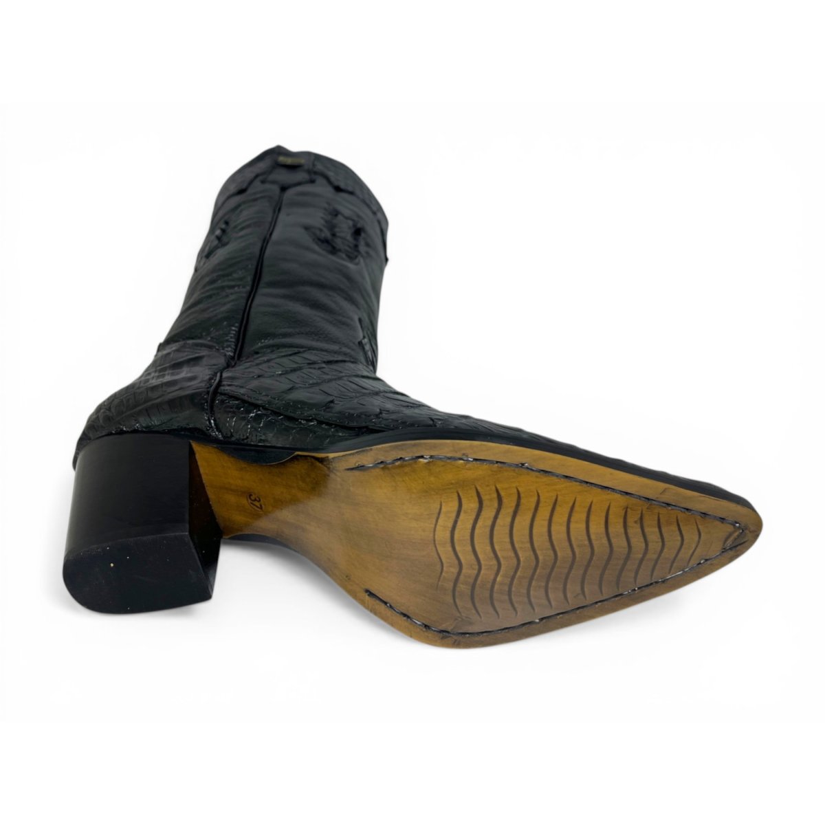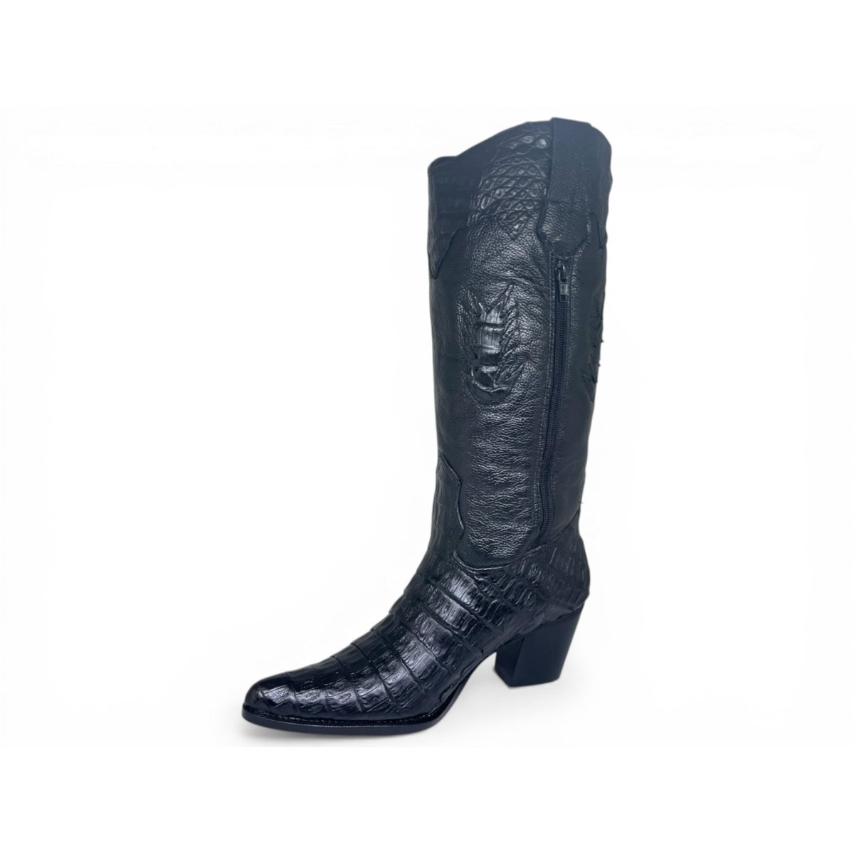 Bota Texana Feminina de Couro Legítimo de Jacaré Preto - Cano Alto, Bico Fino | Reizinho Botas