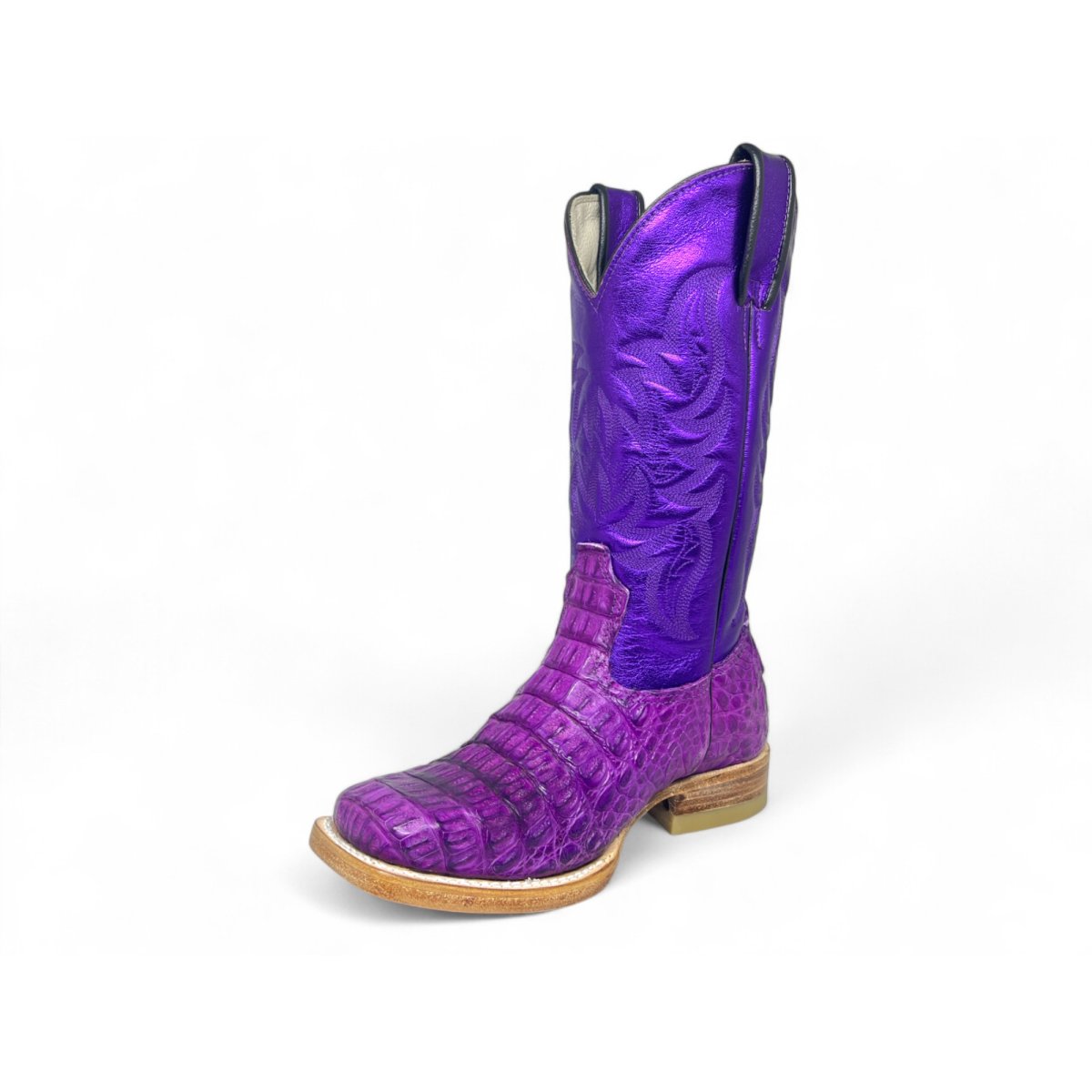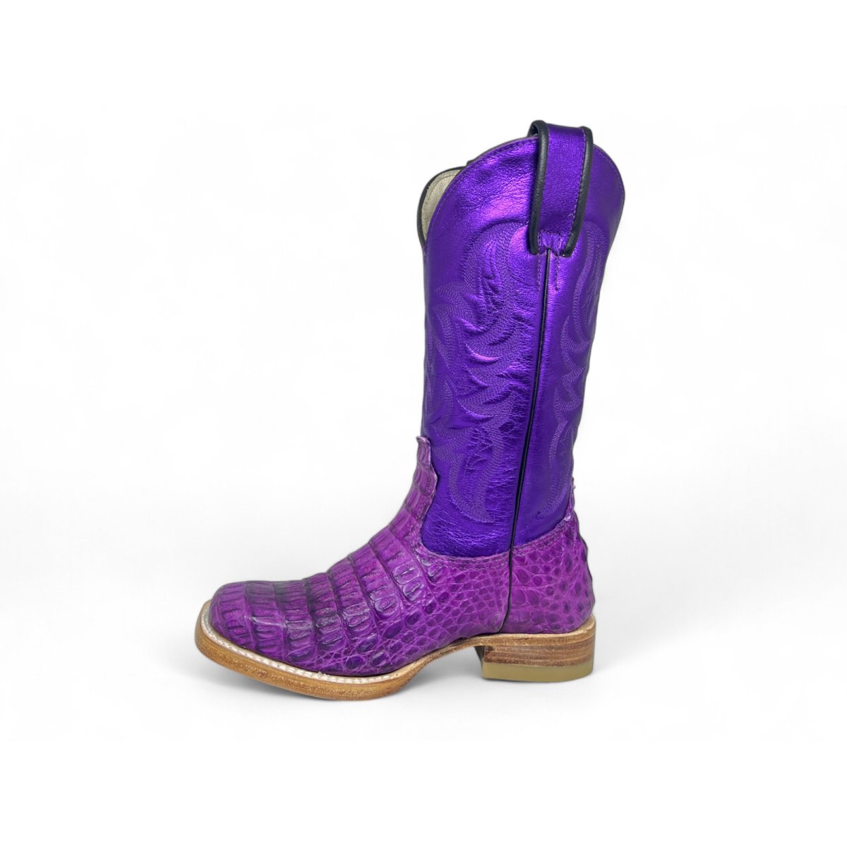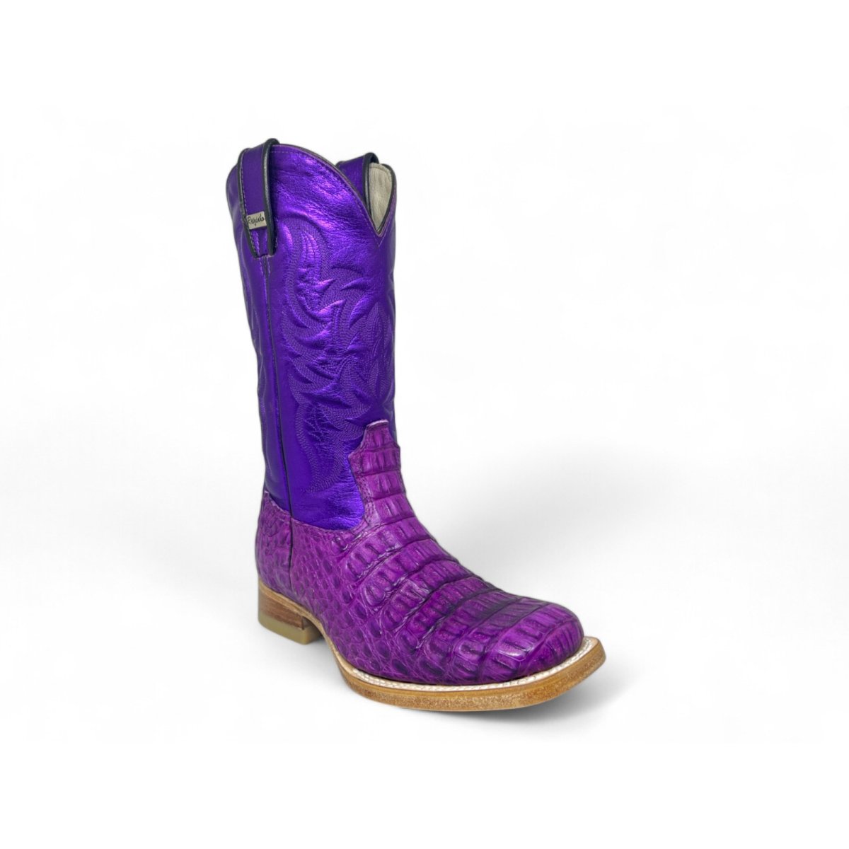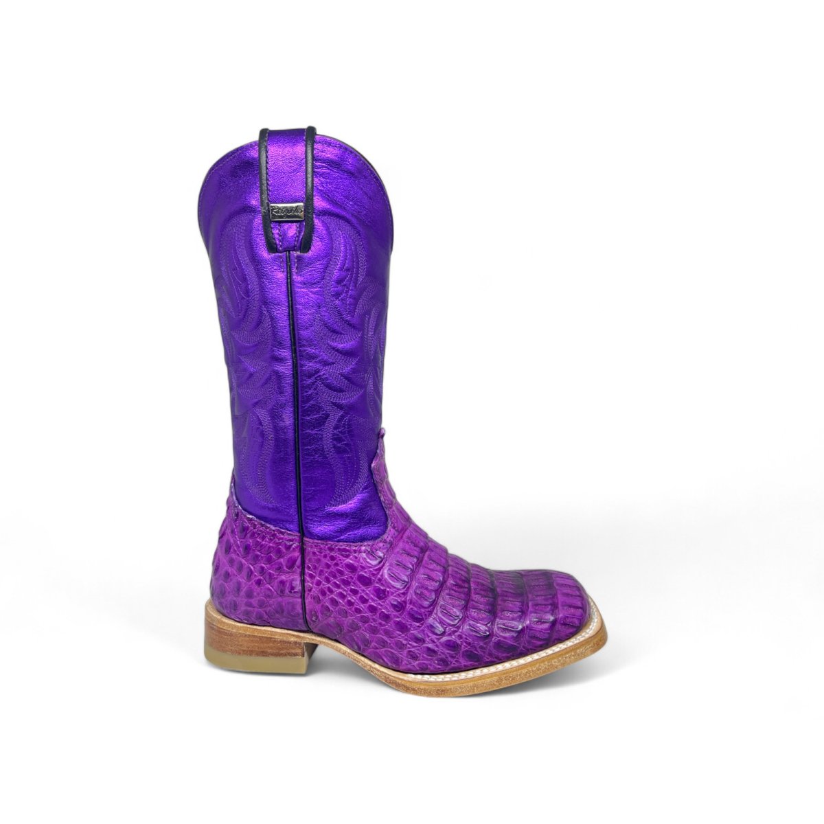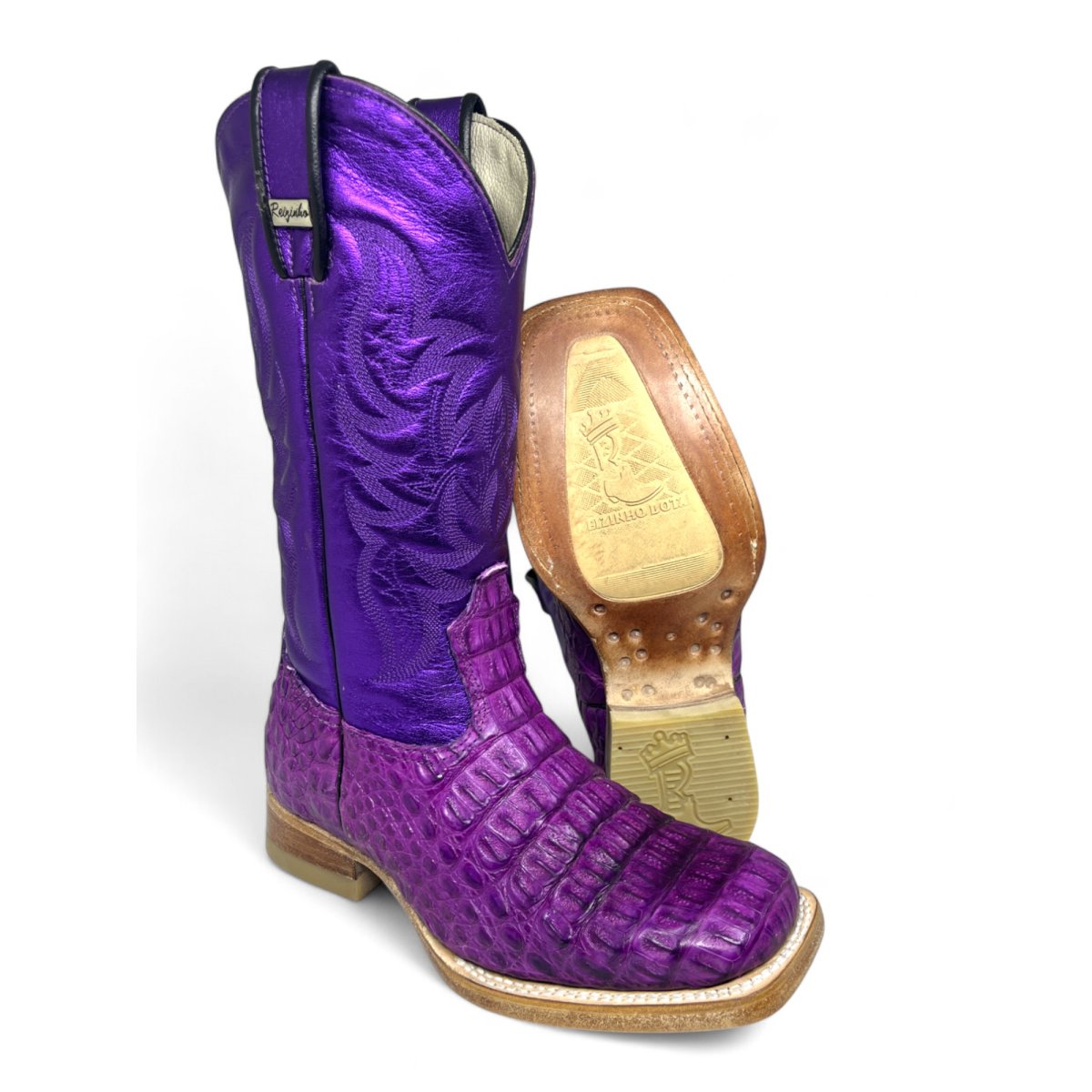 Bota Texana Reizinho Premium de Jacaré Roxo - Cano Alto, Bico Quadrado - Solado de Couro Artesanal Injetado | Reizinho Botas