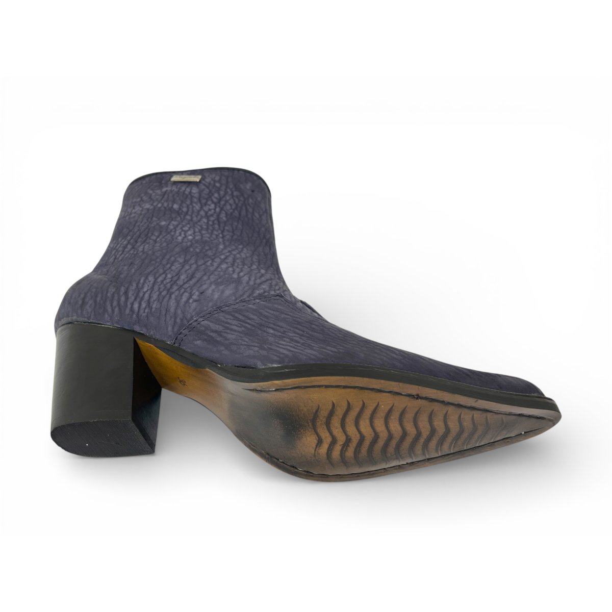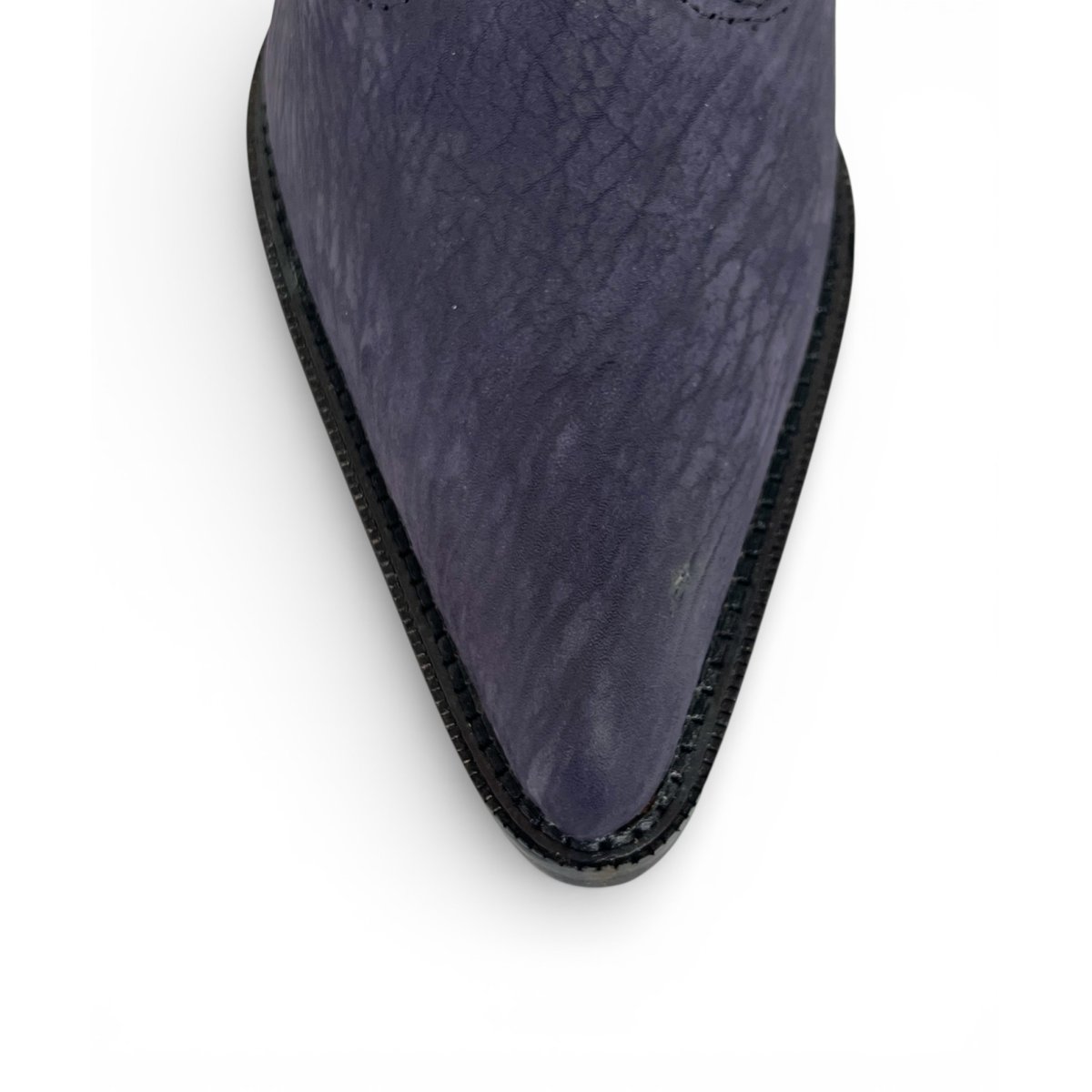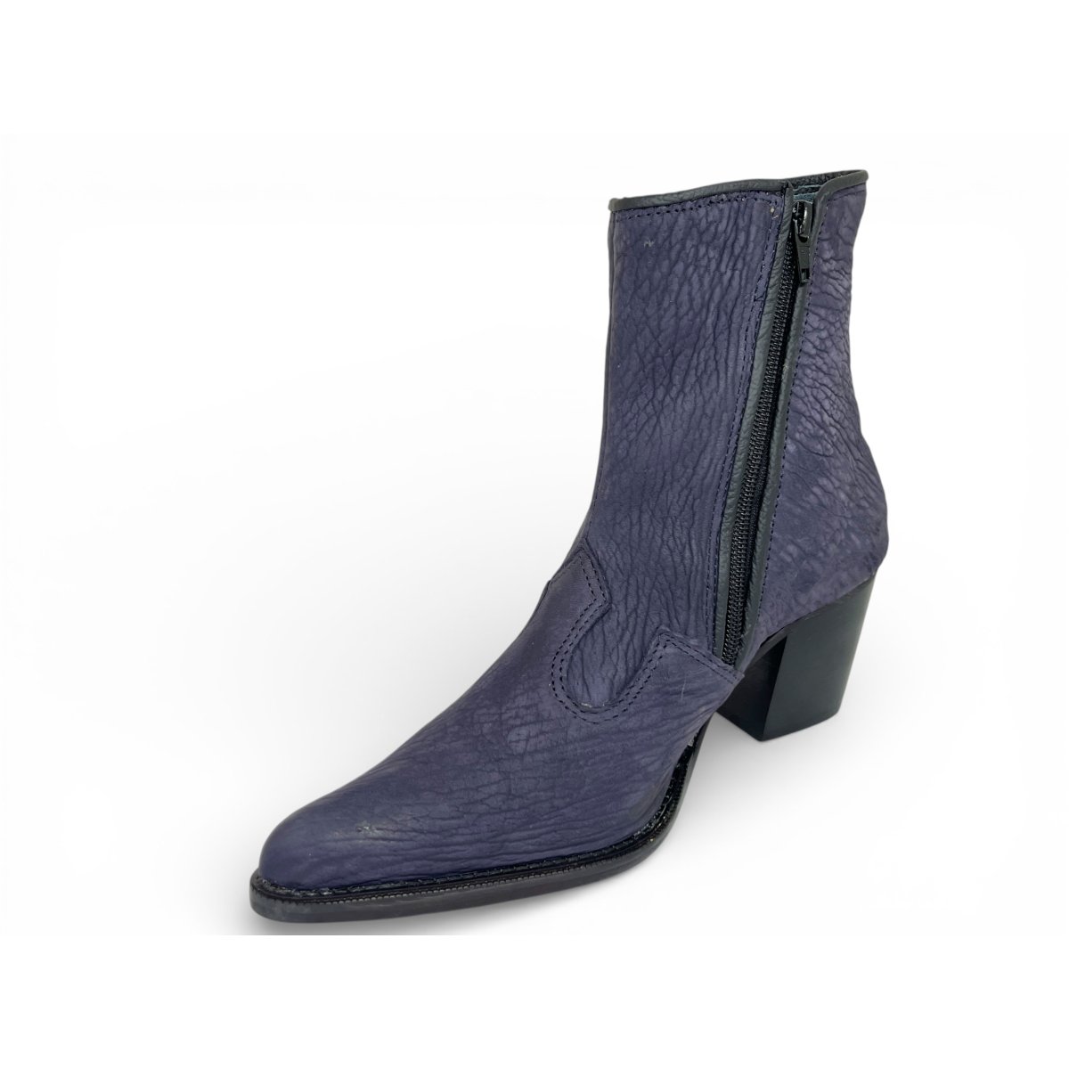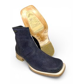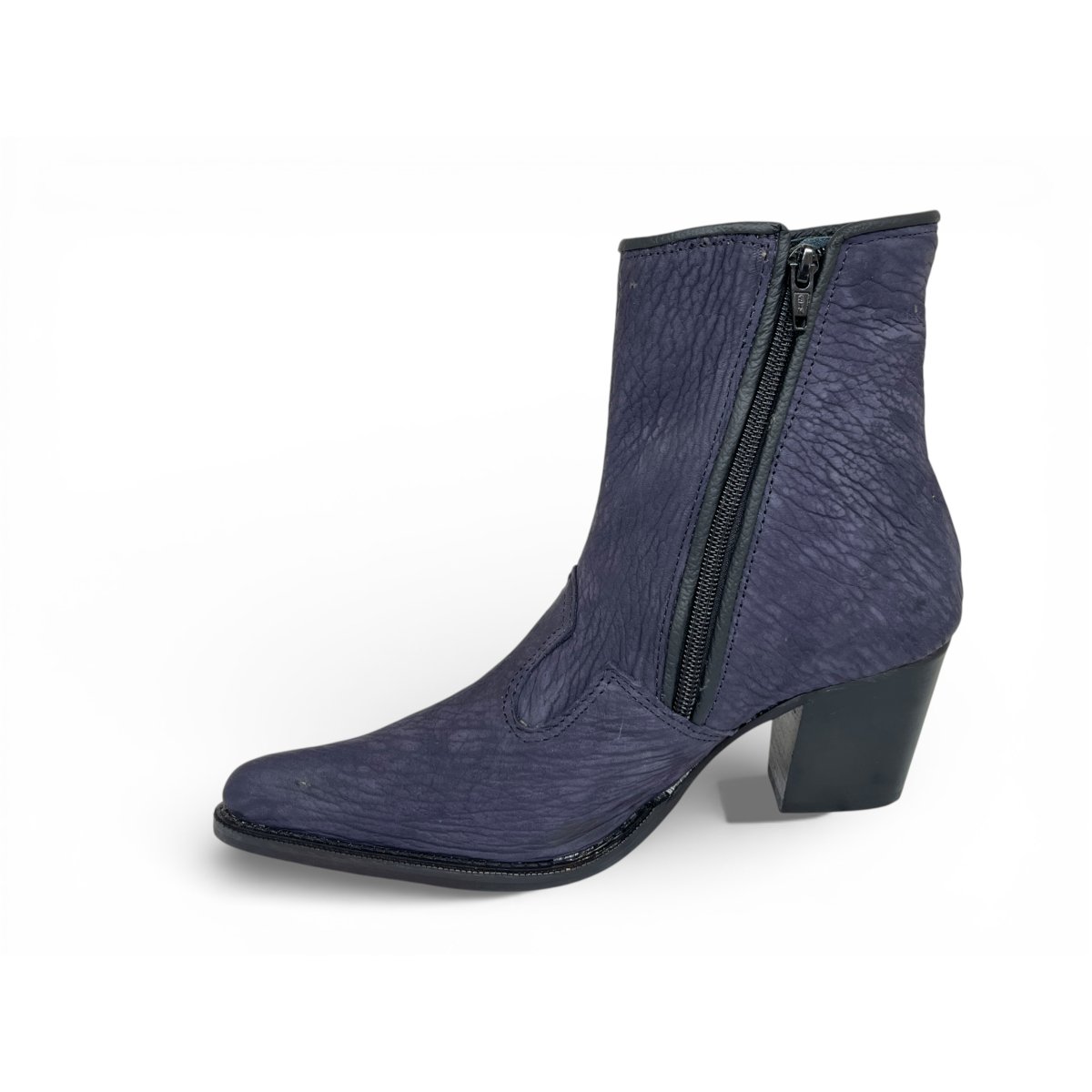 Bota Texana Feminina Reizinho Premium de Couro Legítimo de Lobo Marinho Navy Blue - Cano Curto Zíper, Bico Fino | Reizinho Botas