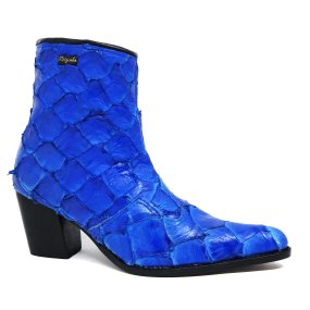 Bota de Couro de Pirarucu Dark Blue - Cano Alto, Bico Quadrado, SOLADO X-FLEX ARTESANAL