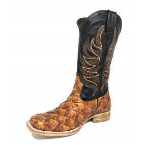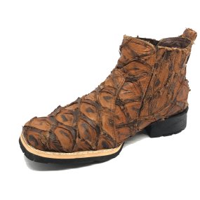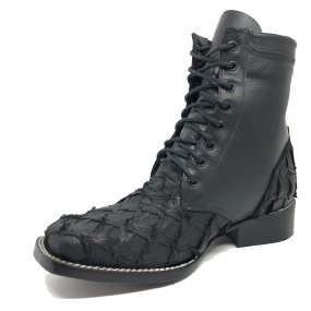 Bota de Pirarucu Dark Blue - Cano Curto, Bico Quadrado, Solado X-Flex Artesanal