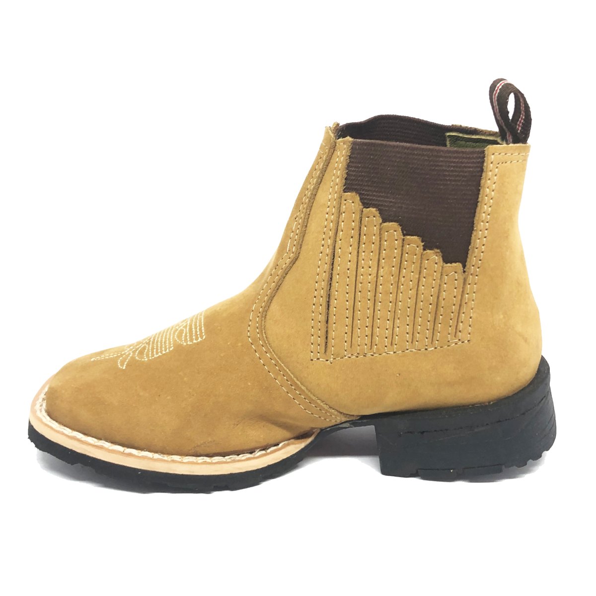 Bota Infantil de Couro Bovino Bufalado Marfim- Cano Curto Elástico, Bico Quadrado - Solado Flex Comfort | Reizinho Botas