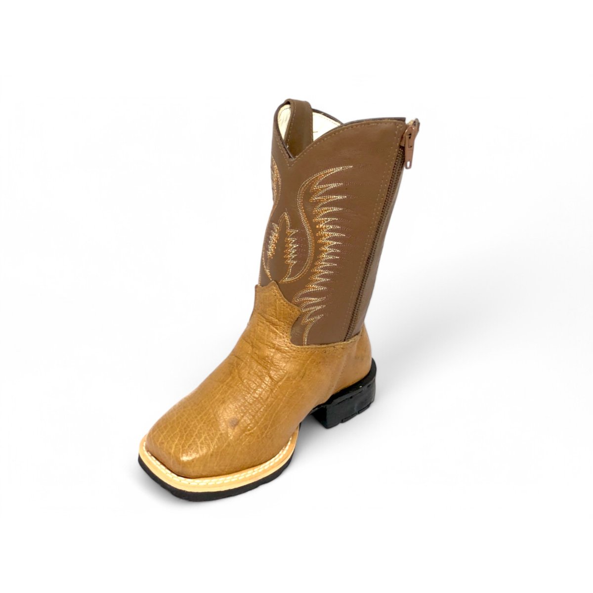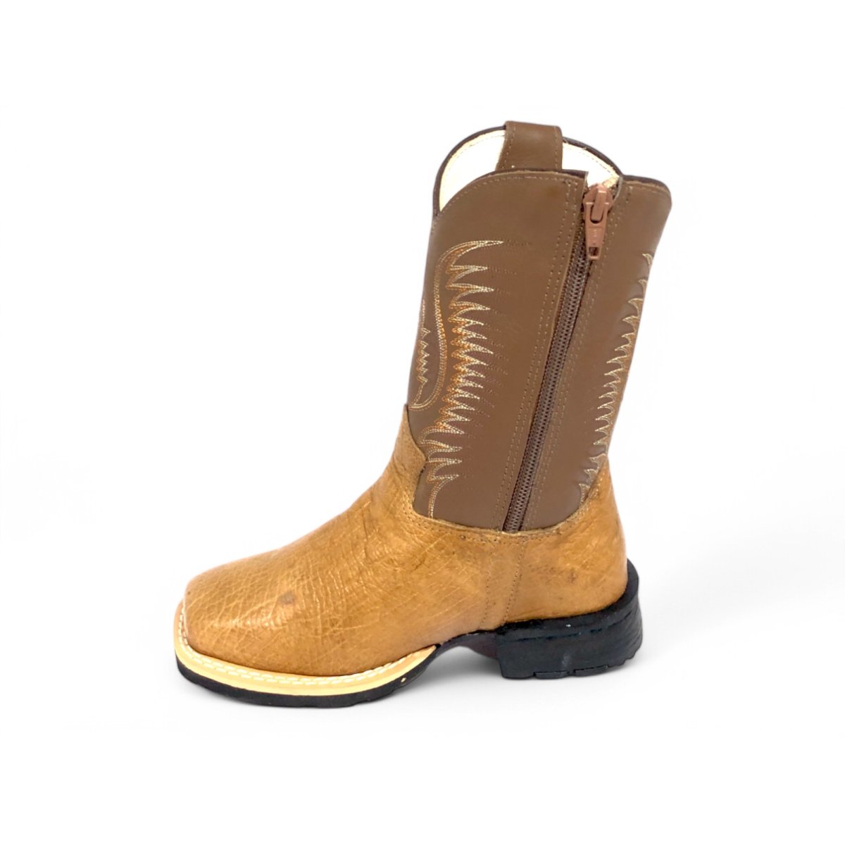 Bota Infantil de Couro De Barriga de Avestruz Conhaque | Reizinho Botas