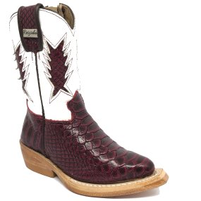 BOTA INFANTIL DE IMITAÇÃO DE COBRA BLUE OFF WHITE - Cano Alto, Bico Fino, Solado de Couro Artesanal