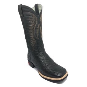 Bota de Avestruz Cheio BloodWine - Cano Médio, Bico Quadrado, Solado X-FLEX Artesanal