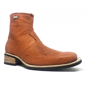 Bota de Avestruz Cheio Conhaque - Cano Alto, Bico Fino, SOLADO X-FLEX ARTESANAL