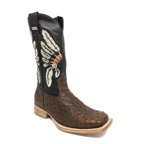 Bota de Avestruz Cheio Conhaque - Cano Alto, Bico Quadrado, Solado Flex Comfort